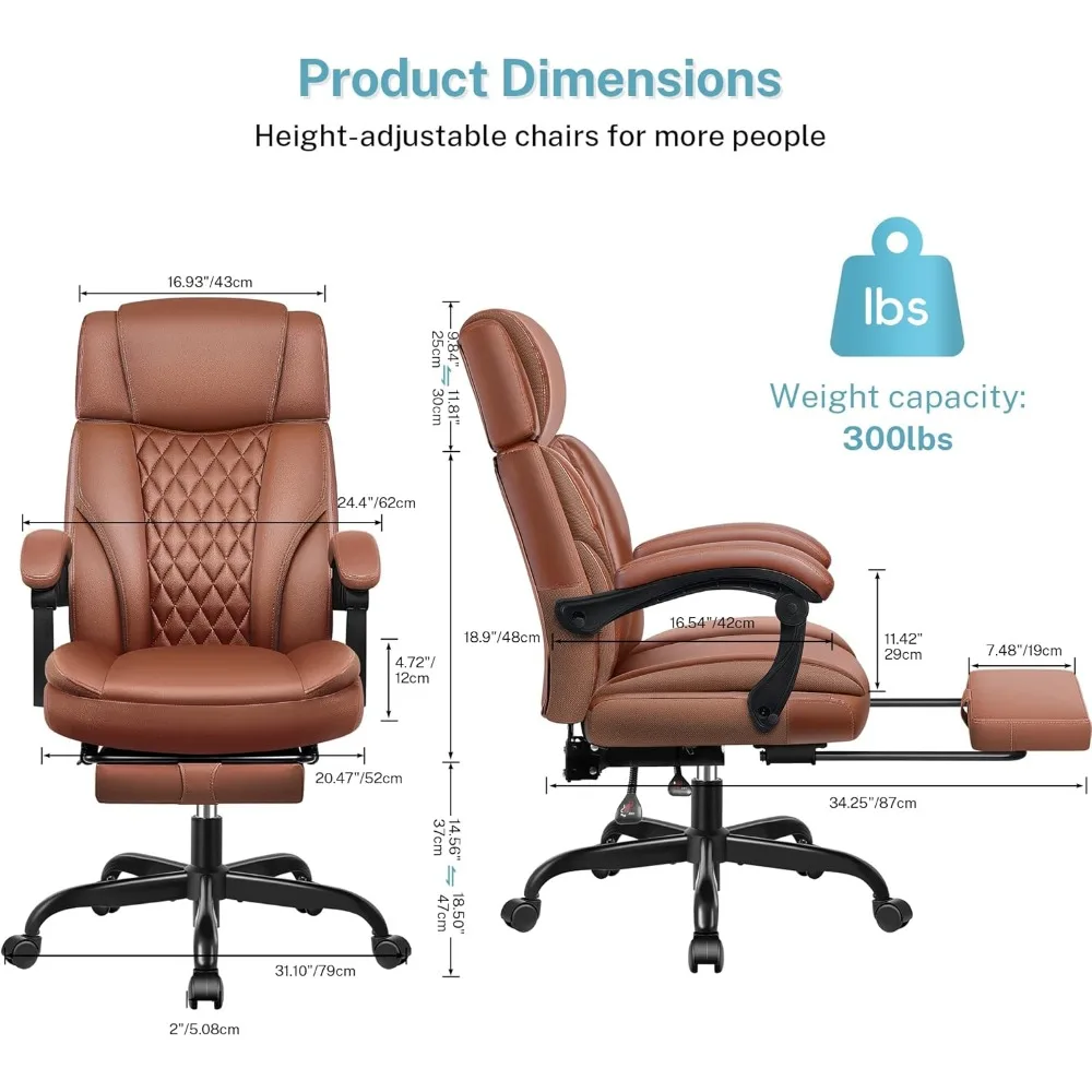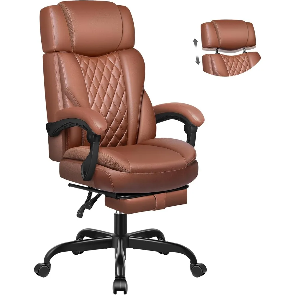 This executive leather office chair provides superior comfort for long work sessions. Ergonomic design supports proper posture and reduces fatigue. Built-in lumbar support helps relieve lower back strain. A retractable footrest allows you to relax between tasks. Smooth swivel and adjustable height enhance mobility and flexibility. Padded armrests offer additional comfort throughout the day. The high-quality leather finish adds a professional and luxurious look. Ideal for home offices, corporate spaces, or study rooms. Sturdy construction ensures durability and stability. Elevate your workspace with this stylish and supportive office chair.