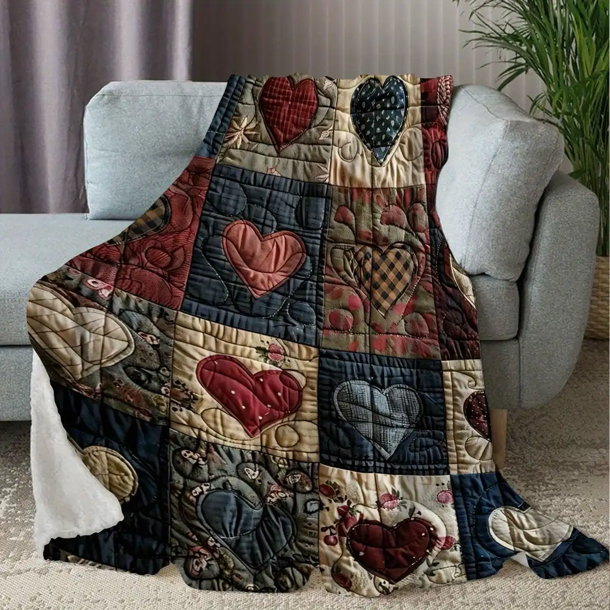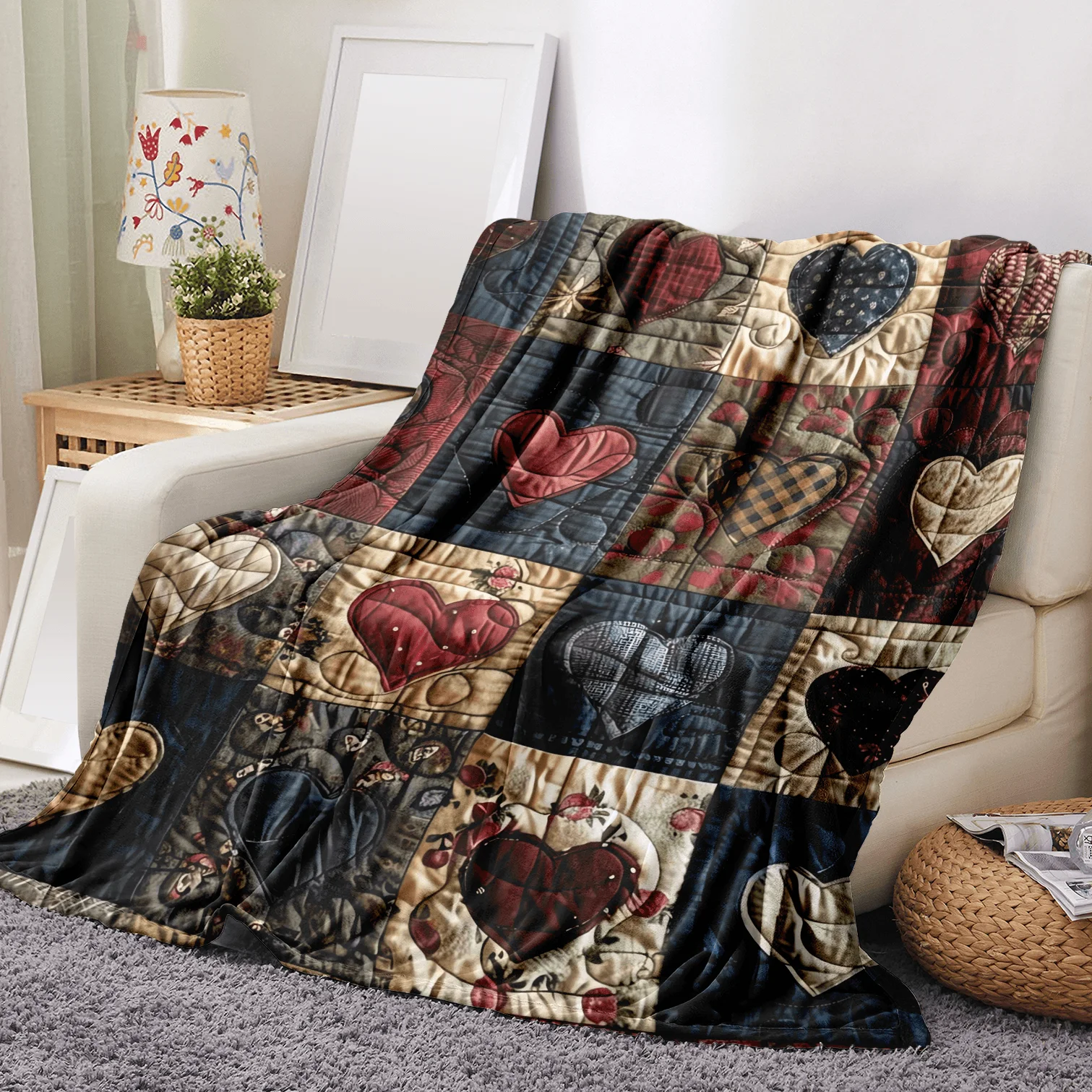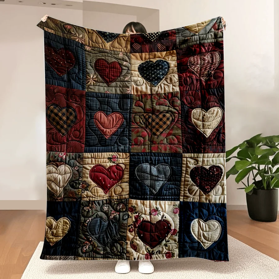 This ultra-soft flannel blanket offers cozy comfort wherever you go. The heart print design adds a playful and warm decorative touch. Lightweight construction makes it easy to carry for travel or camping. Soft flannel fabric provides gentle warmth without bulk. Perfect for office use, it keeps you comfortable during long hours. The patchwork style adds visual interest and charm. Durable stitching ensures long-lasting quality and performance. Suitable for year-round use in various environments. Easy to fold and store when not in use. This blanket combines portability, softness, and style.